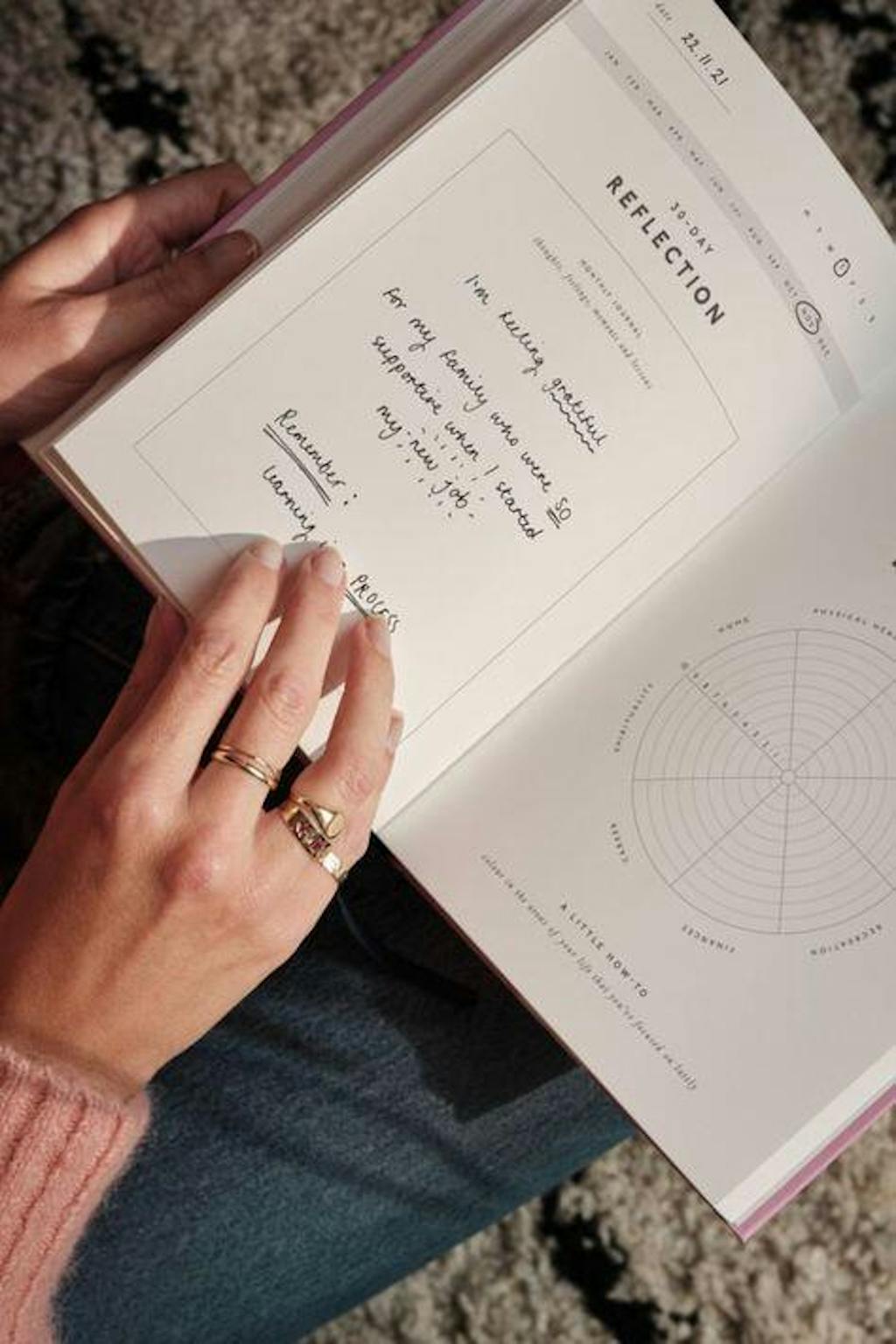 Wann Dir d'Säiten ausfëllt mat deem wat Dir an Ärem Liewen dankbar sidd an Är Unerkennung vun engem oder eppes ausdréckt, gitt Dir méi bewosst vun all de schéine Saachen ronderëm Iech an ännert den Toun vun Äre Gedanken vun negativ op positiv.