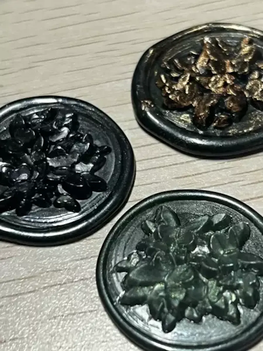 1. Repeatedly and gently press the wax seal stamp onto the ink pad, coating the stamp surface with ink color